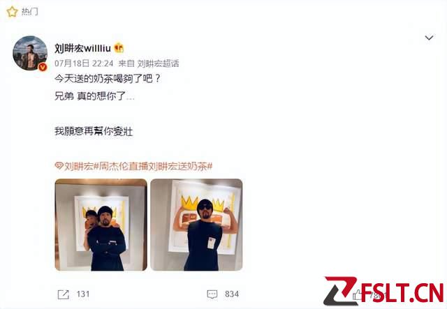周杰伦直播刘畊宏送奶茶,晒照片网友发现细节:这么strong啊?