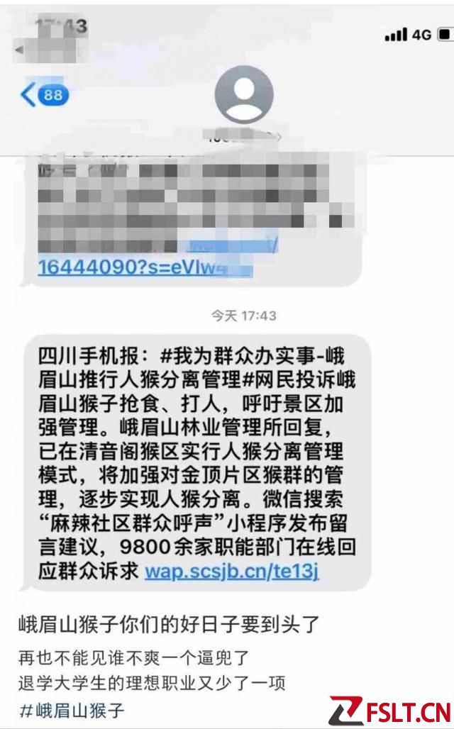 近日,一条名为“峨眉山的猴子你们的好日子到头了”的网帖引发网友关注。该网帖附上了一张截图。截图中称,峨眉山将推行“人猴分离”管理。截图内容是:网友投诉峨眉山猴子抢食、打人,呼吁景区加强管理。峨眉山林业管理所回复,已在清音阁猴区实行“人猴分离”管理模式,将加强对金顶片区猴群的管理,逐步实现“人猴分离”。网帖后的评论称“管理员跟猴子的较量开始了”,还有网友说“黔灵山的猴子也潇洒不了多久了”。