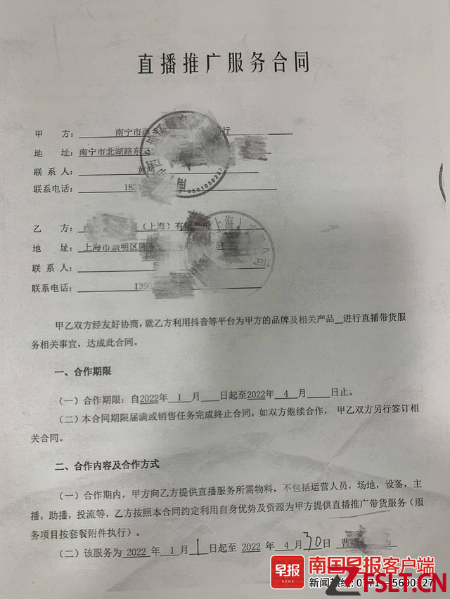 签订直播服务合同后,南宁某商贸公司支付了7万元预付款。