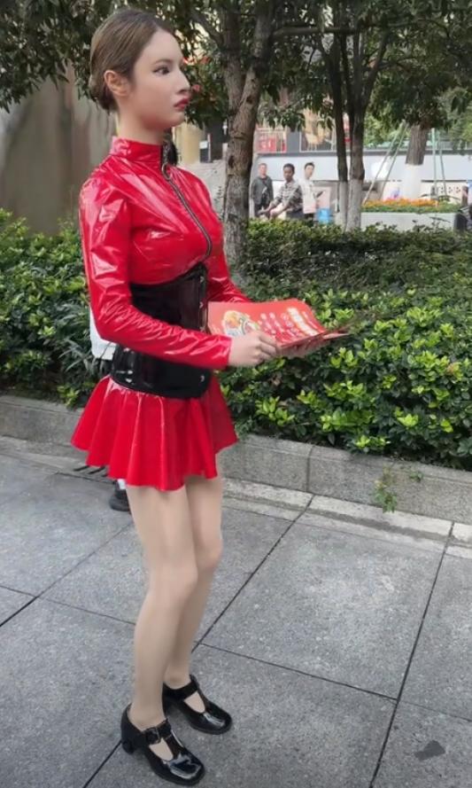据了解,这位女士平时就非常热爱街舞,有着深厚的舞蹈功底。因此,当她穿上红裙,手持传单,以一种类似于机器人的步伐行走时,才会如此引人注目。