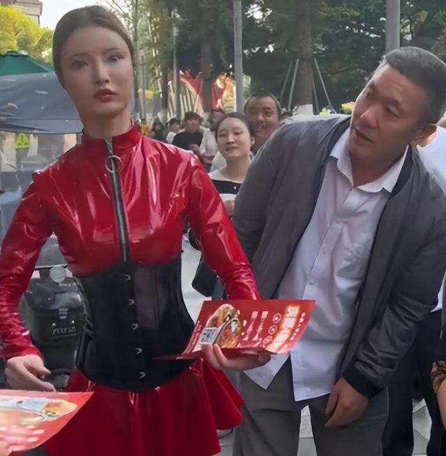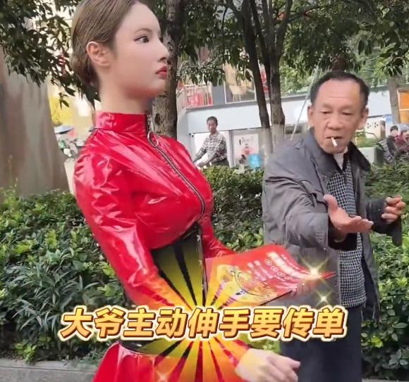 重庆一火锅店老板娘假扮机器人发传单!大爷追着要,拿到传单后接着看