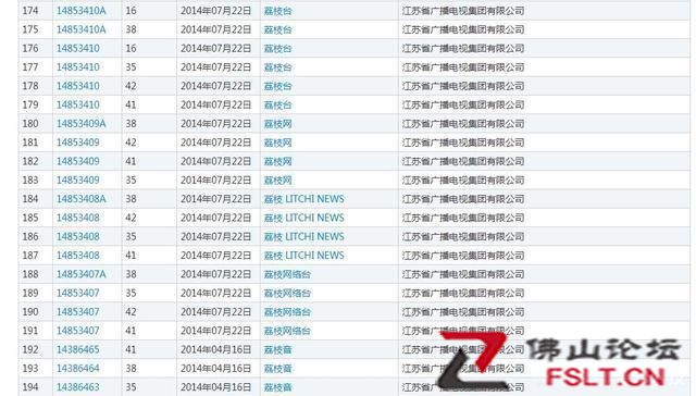 江苏卫视早在2010年开始,就着手把江苏卫视包装为“荔枝台”不仅官网,旗下的栏目都与荔枝有关。这些我们从江苏卫视在商标注册上就可以看到:从2014年至今,江苏卫视在相关类别上申请注册了194件带有“荔枝”字样的商标,包括第38类上的电视播放、无线电广播等服务。