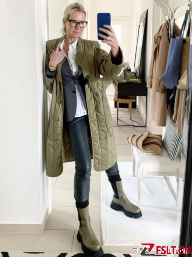 像采用绗缝设计的军绿色系棉服、羽绒服,与烟囱靴天生一对,衔接皮裤不仅更好凸显腿部线条,还能加强帅气的穿衣风格。