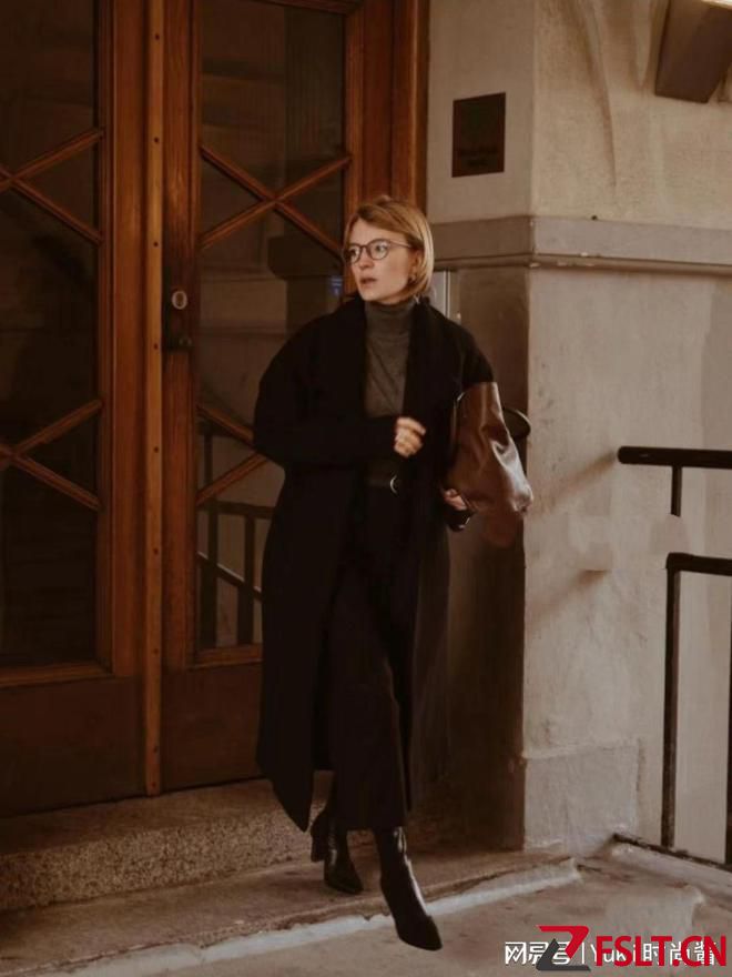 搭配黑色烟囱靴时,还可以利用内搭、长裤、靴子顺色思路,穿出低调高级、显瘦显腿长的造型。