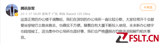 腾讯公司公关总监张军表示,腾讯目前在深圳的办公场所一直比较分散,大家经常开个会都要坐穿梭巴士跑来跑去,也确实不方便。随着自有大厦不断投入使用,未来新办公楼宇也陆续竣工,适当集中办公场所也是好事。