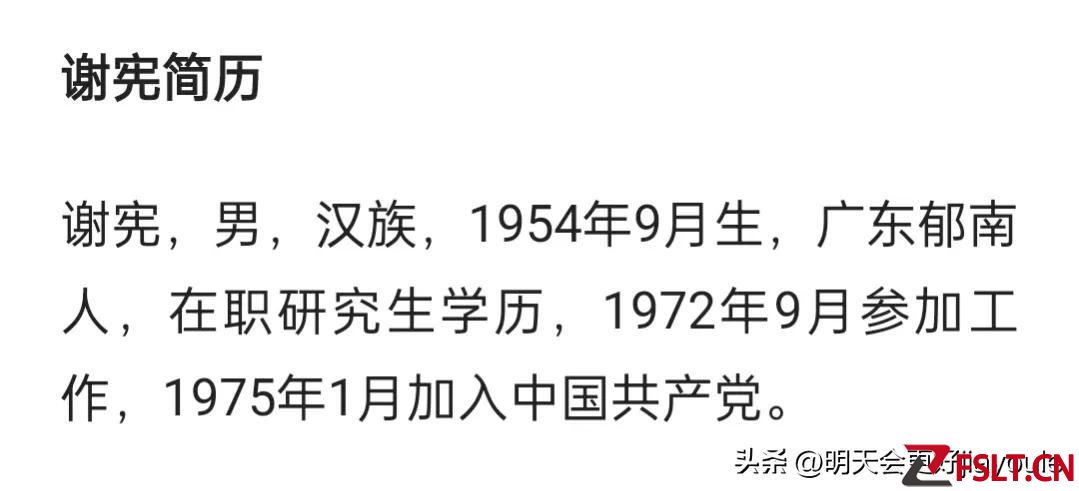然后网上查询到的信息,谢宪他的学历是在职研究生学历,可以看出谢宪他确实是一个不简单的人物,学历很高,在70年能考上大学,拥有这么高的学历不容易,然后谢宪他是18岁参加的工作,21岁就加入了中国共产党,成为一名党员,从事党工作已经差不多40年,算是一名资深党员干部,所以笔者我真的是没有想到,谢宪他会做出违法违纪的事情出来,他在我们广东老百姓心中一直口碑都非常好,是一个清廉廉政,洁身自爱的好官。