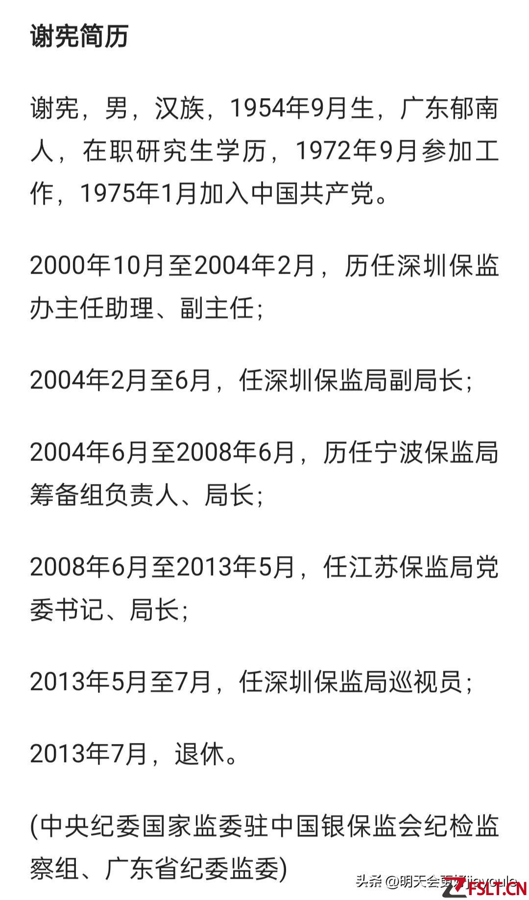 从网上查询到的信息,谢宪在职期间也任职过不少的职位,曾历任深圳保监办主任助理,副主任,深圳保监局副局长,宁波保监局筹备组负责人,局长,任江苏保监局党委书记,局长等等职位,然后退休时间是在2013年7月,这样身经百战的老官员,应该更加清楚哪些事情能够做,那些事情是不可以去触碰的,可依然还是控制不住自己的欲望,一脚踩进去罪恶的深渊,让人寒心!