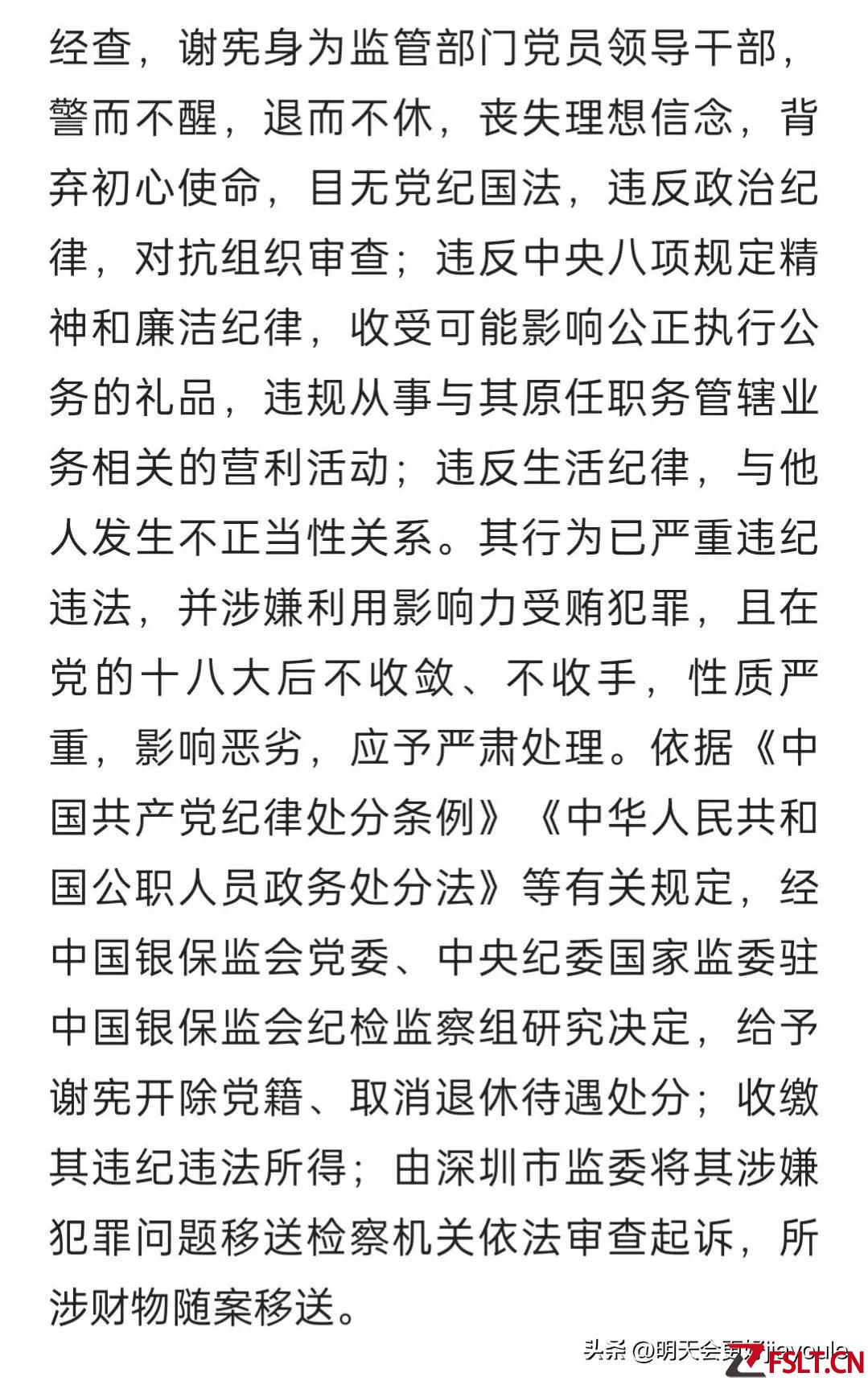 其二:背弃初心使命,违反政治纪律,并一直对抗组织调查审查,意思很明显就是谢宪他违法违纪的事实已经摆在了面前,他依然还死鸭子嘴硬,顽固不化,还要继续串通别人,一起对抗组织调查和审查,情节可谓是相当的恶劣,所以对于谢宪他,笔者我个人觉得必须要严惩不贷。