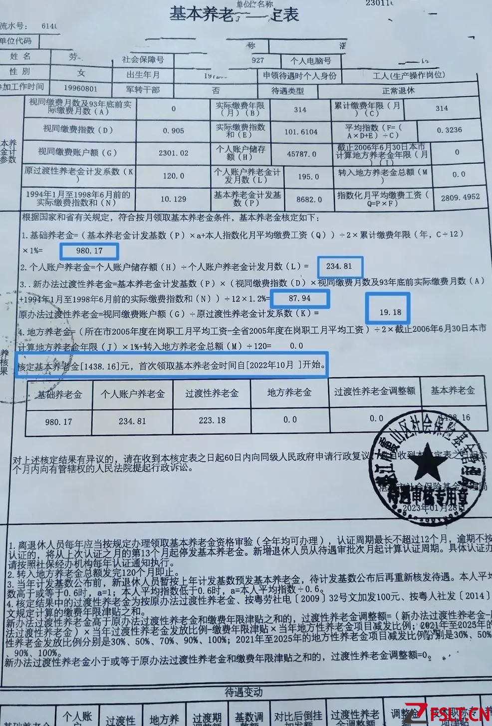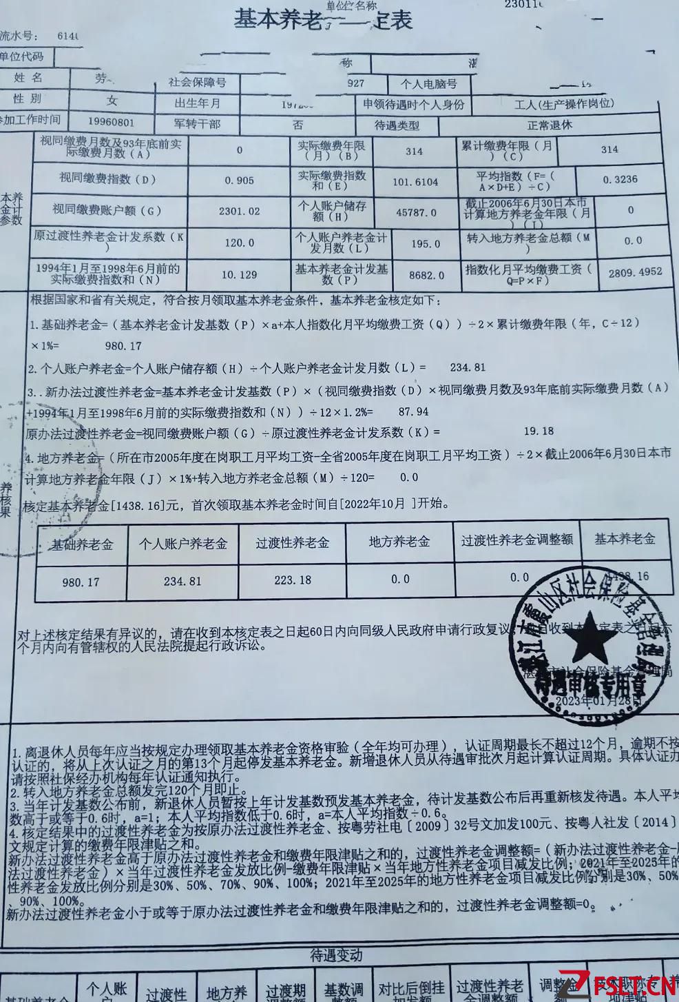 请先看一份《广东省退休人员基本养老金核算表》