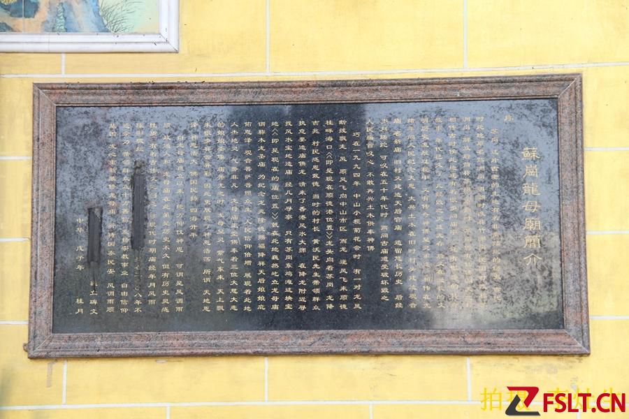为纪念龙兆隆德赐福降祥天后娘娘疵佑思泽,观音答萨普照众生,人民信仰倍增, 展现着此地人杰地灵,气势非凡,龙母庙正堂供奉着三位大慈大悲的娘娘圣庙,庙开光之时,龙母显灵,紫气东来,天上飘来很多祥云异彩,因此更展现了神思浩荡,所谓天地愿恩泽,神恩浩大,佛国民扬,四海升平。自龙母庙巍立以来,地方仰仗神恩,可谓是风调雨顺,政通人和,龙母庙在此虽是历史不久,但有历史灵感性质, 有着古传文化创意。可现代时期庙经年月风雨陈旧破烂,在2008年,群众及十方善信不遗余力,发扬宗教事业,自由信仰基回,发心重新装修龙母庙,祈祷国泰民安,风调雨顾顺。