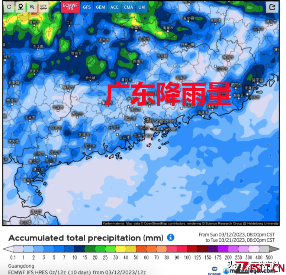 当然,超级计算机的预报也同样指出,到了3月21日之后,广东这种少雨情况将有所改善,由干转湿形势明显,广东降雨将有望增强。届时,受变切线影响,广东大部分市县不排除将迎来一次大雨到暴雨降水过程,局部地区伴有雷雨大风的天气。