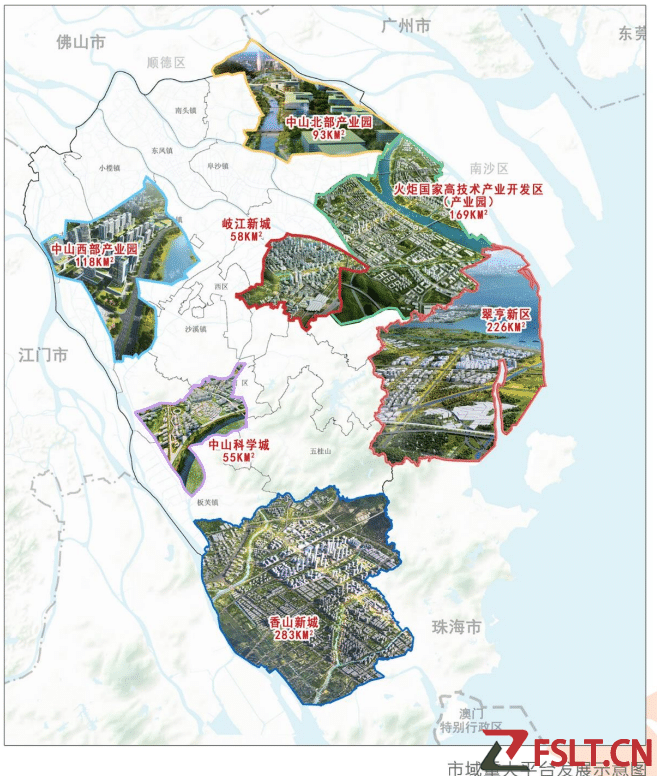 目前,中山区别于老城区,正在如火如荼地开发东侧火炬、翠亨新区一带,一边打造新兴产业,一边大兴土木,用房地产导入人口。