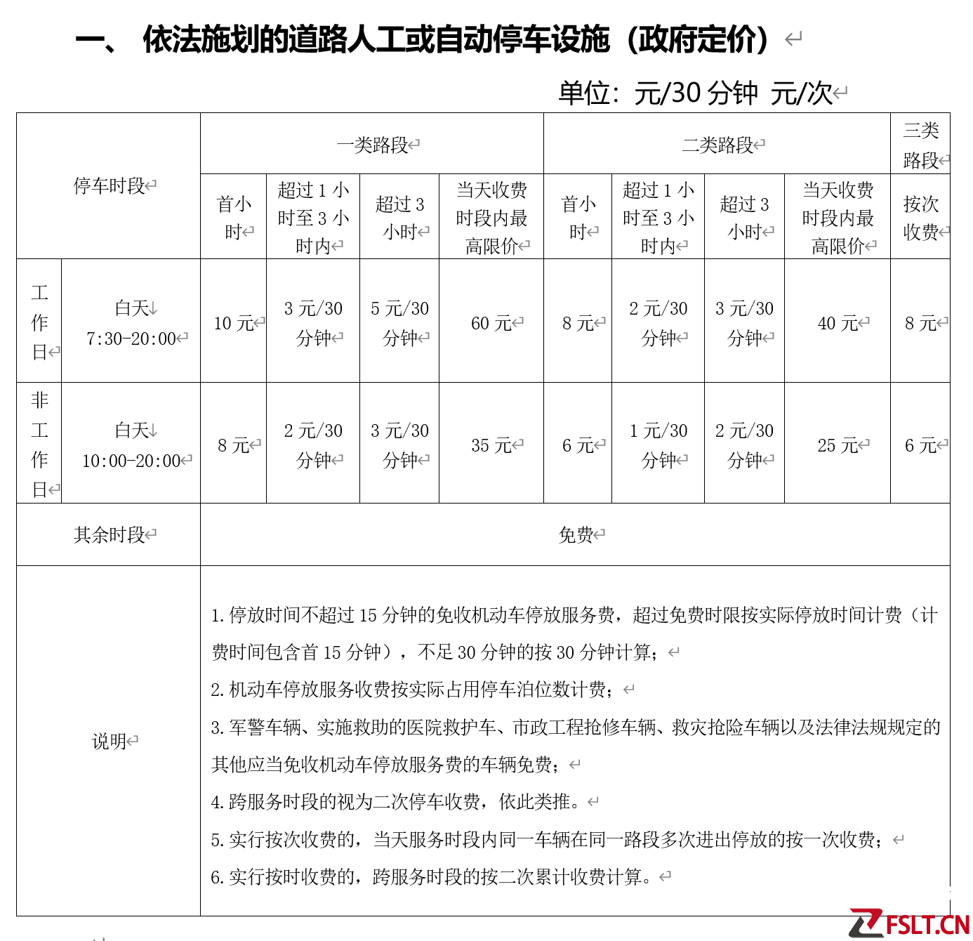 禅城区对停车收费标准的有关规定