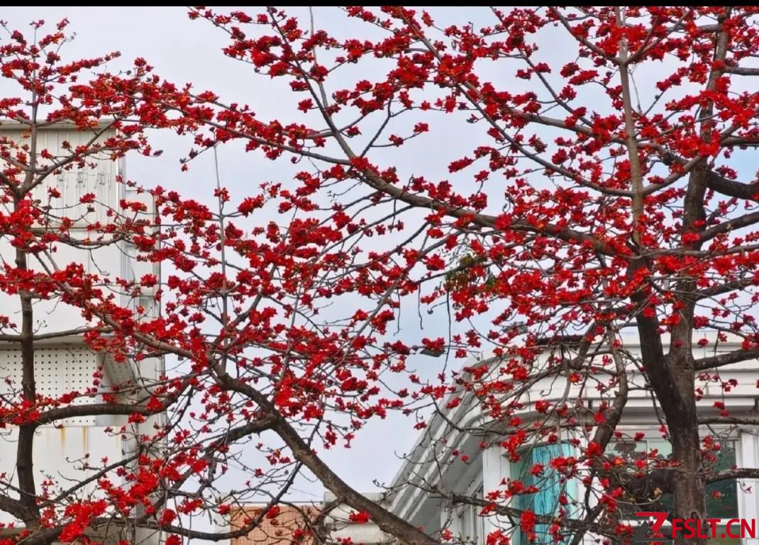 第一次看到公园石桥旁的木棉花树,惊叹它的树高、形美、花红,满树花朵红彤彤,不见树叶。但当时并不知道这棵树的名字,微风吹动,飘落下一枚血红色的花朵。