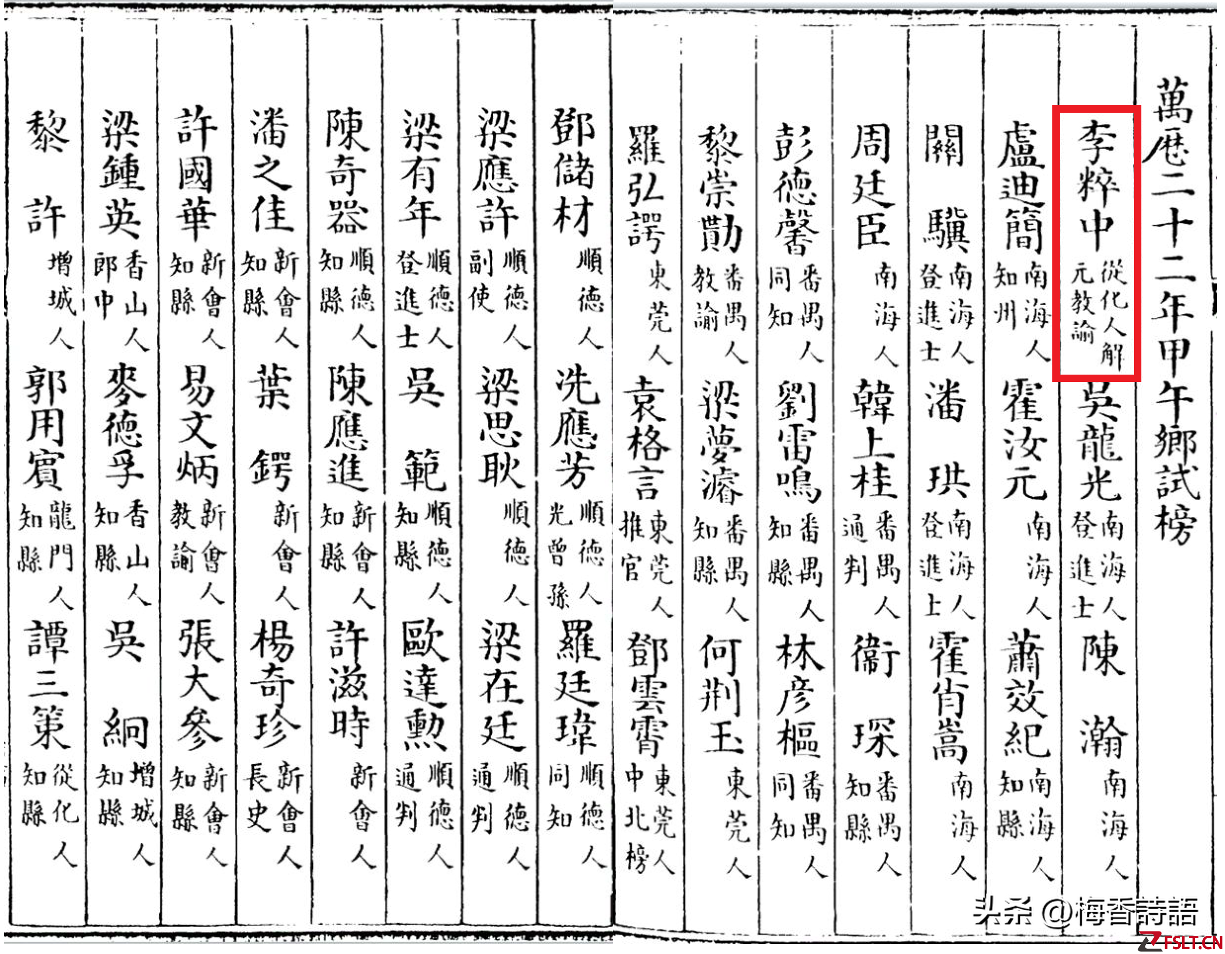 广东李氏家族解元李粹中1574-1622字太冲号含与,广州府从化县水东堡人,在从化县参建【兴贤义学社】。