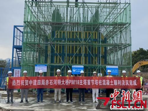 中新网汕尾3月16日电 (程景伟 刘子男 尹凤羽)据中建四局16日消息,近日,经过12个小时的连夜奋战,由该局承建的深汕特别合作区小漠国际物流港(一期)陆域形成及配套路网建设项目赤石河特大桥工程取得重要进展,其主塔首节塔柱混凝土浇筑顺利完成。这标志着赤石河特大桥首个主塔全面进入塔柱施工阶段,为下一步主桥钢箱梁架设打下坚实基础。