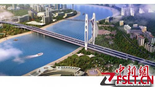 赤石河特大桥是深汕合作区内首座单塔双索面斜拉桥,位于红海大道中段,主塔设计为鱼梭型,总高111米,桥面以上塔高99.5米。