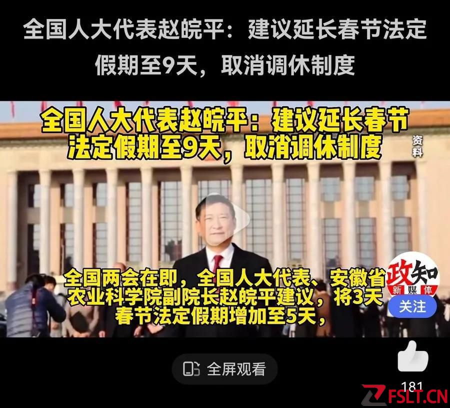 人大代表赵皖平:建议取消调休制,调休让春节假期“变了味”。
