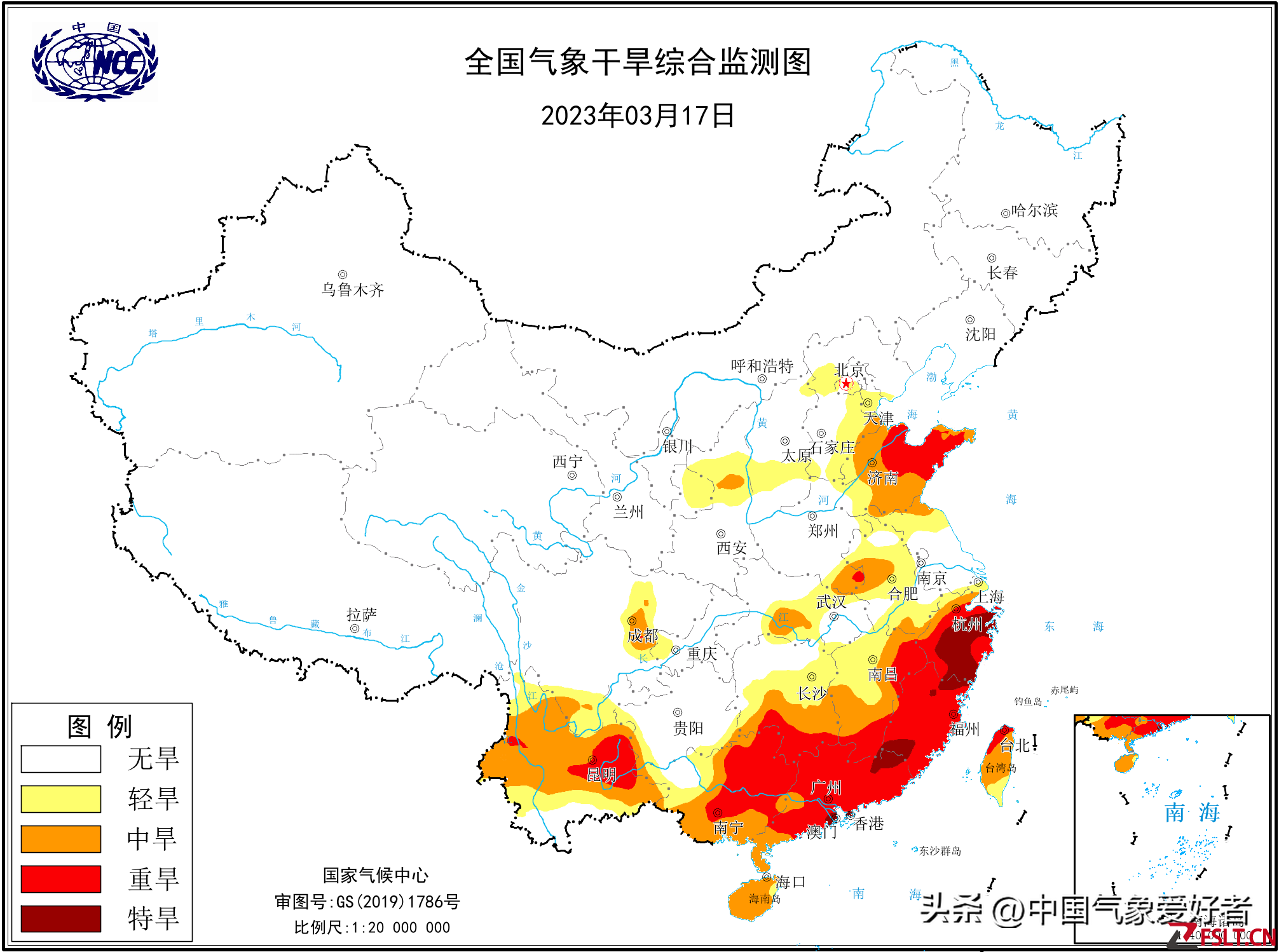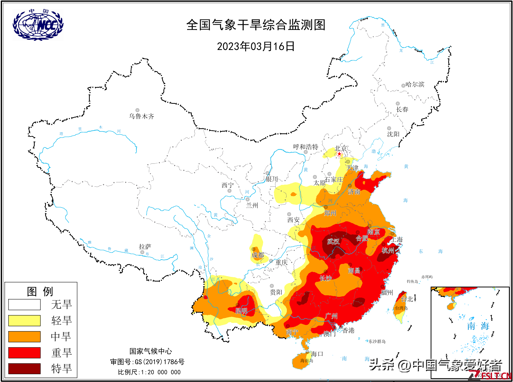 在过去的一段时间里,我国南方多地降水偏少、气温偏高,在往年应该春雨绵绵的时候,今年却经常艳阳高照,因此,不少地方的干旱已经迅速发展。国家气候中心3月16日的监测数据显示,长江中下游和华南多地目前都出现强烈的气象干旱中,尤其是湖北、江西、安徽、浙江、广西、广东局部还出现了特旱区。