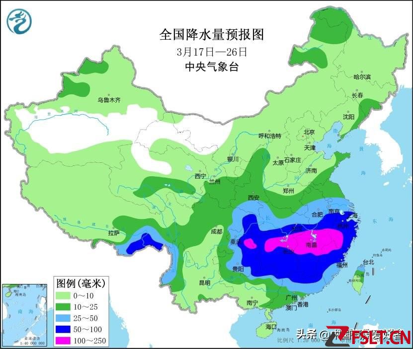 实际上,中央气象台发布的未来10天的累积降水预报上可见,未来十天(3月17-26日),南方地区将有一次明显的降雨过程,四川东部、重庆、贵州中东部、江汉、江淮、江南大部、华南以及西北地区东南部、西藏东南部等地累计降雨量有25~50毫米,其中贵州东部、重庆东南部、江南、华南东北部等地的部分地区有70~100毫米,局地超过200毫米,上述大部地区降雨量较常年同期偏多4~8成,局地偏多1~2倍。从这预报上看,目前南方地区的降雨增加还只是开始,接下来南方还会继续多雨,饱受干旱困扰的鄱阳湖、洞庭湖流域和长江干流沿线地区有望继续迎来大范围的显著降雨。