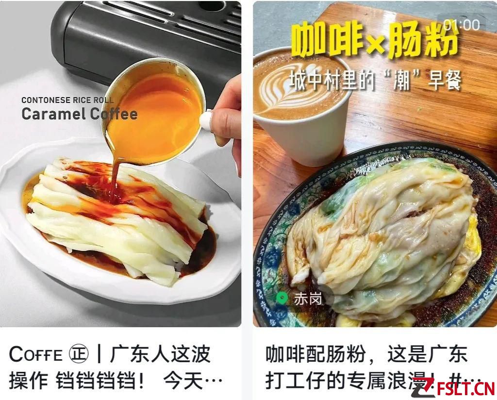 图片来源:微博伴随着广东肠粉的出圈,一种新奇的组合也在各大社交平台出圈——