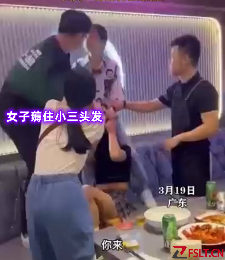 见到这一幕,女子带着朋友直接冲进了包厢,薅住小三的头发,不让她离开。