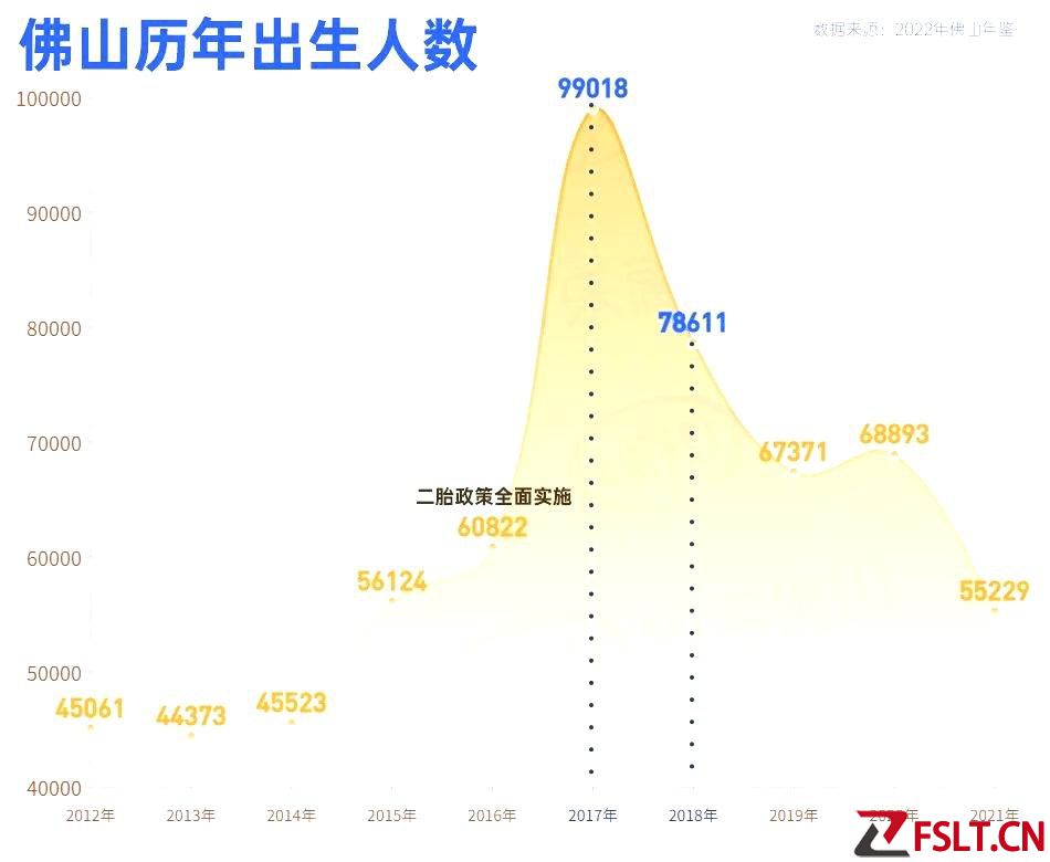 而从佛山年鉴数据显示,佛山出生人口最多的年份为2017年,逼近10万人!其次是2018年,接近8万人。因此,以此推算,佛山对应的真正入学潮应该是在2023年和2024年。