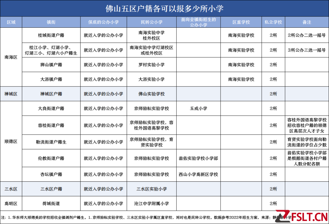 值得一提的是,随着去年多所民转公学校的到来,不少镇街户籍生可报读的学校选择大大增多,据教育行业人士“静敏聊升学”统计指出,部分户籍生最多可以报5所小学。