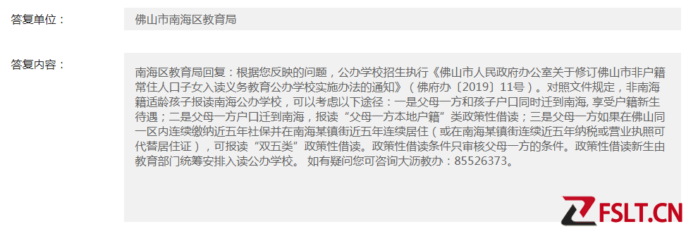 二是父母一方户口迁到南海,报读“父母一方本地户籍”类政策性借读;