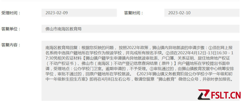 南海区教育局回复:根据您反映的问题, 按照2022年政策,狮山镇内异地就读的申请步骤: