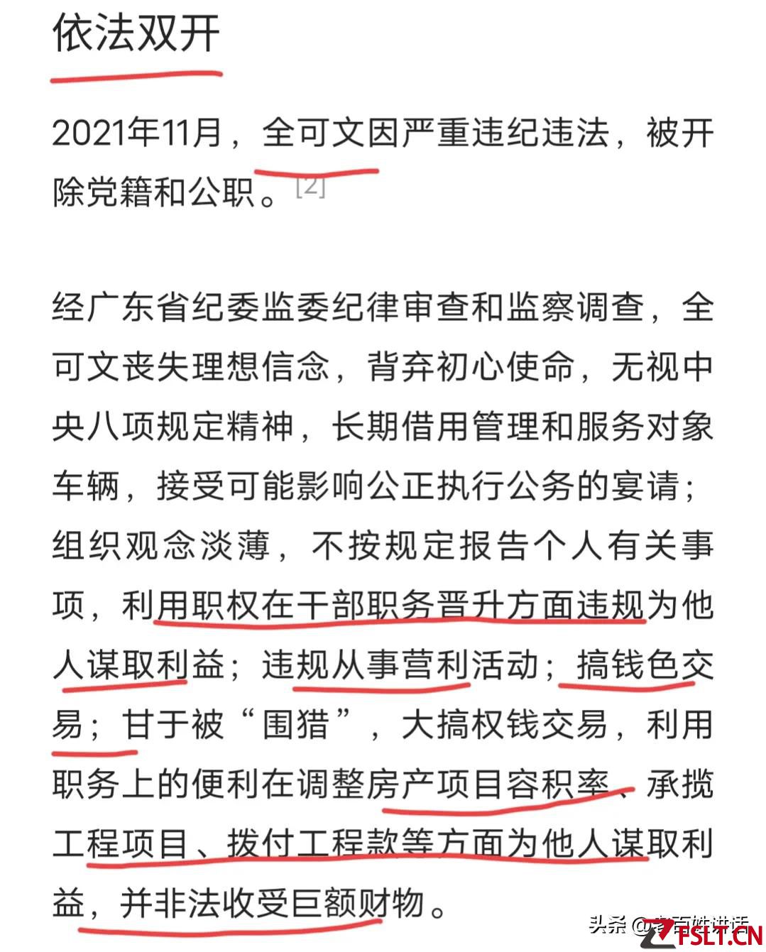 2021年11月,全可文被开除公职和党籍处理,并且收缴其违纪违法所得,一并移送检察机关进立案查审查起诉。
