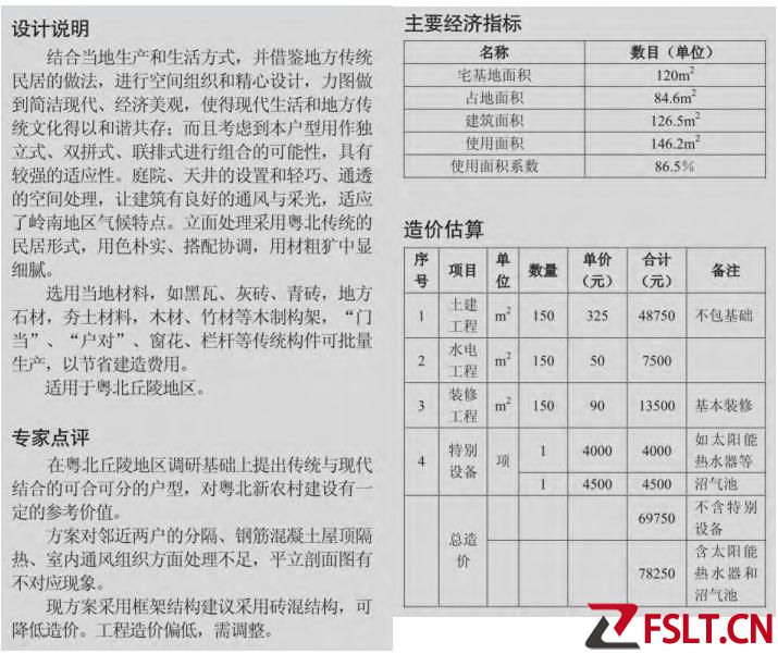 广东省社会主义新农村住宅设计图集之一层半农业村设计方案(二)