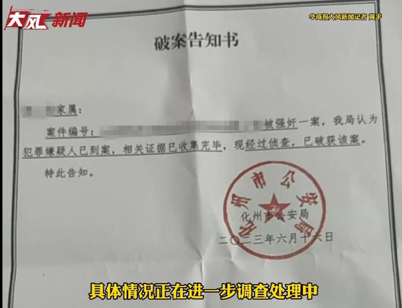 随后,当地警方向小丽的父母,出具了一份破案告知书。目前,该案件还在进一步处理中。
