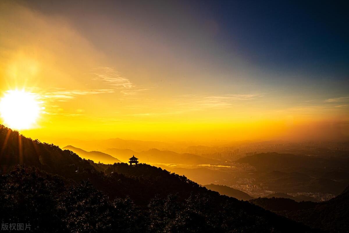 去观日亭看唯美的日出,当晨曦划破天际,橙红色的光晕照拂在你的脸颊,尤其的温暖与治愈,人间皆是浪漫。绝美的日落,渐沉的夕阳中,层林尽染,美轮美奂。