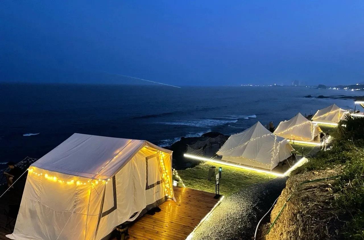 在黑排角有一处悬崖露营地,帐篷依山而建,帘子一开就能看见绝美的海水,非常的惬意,还可以观看超美的日出,浪漫治愈,但价格有点贵,条件允许下值得考虑(一晚2000-3000)。