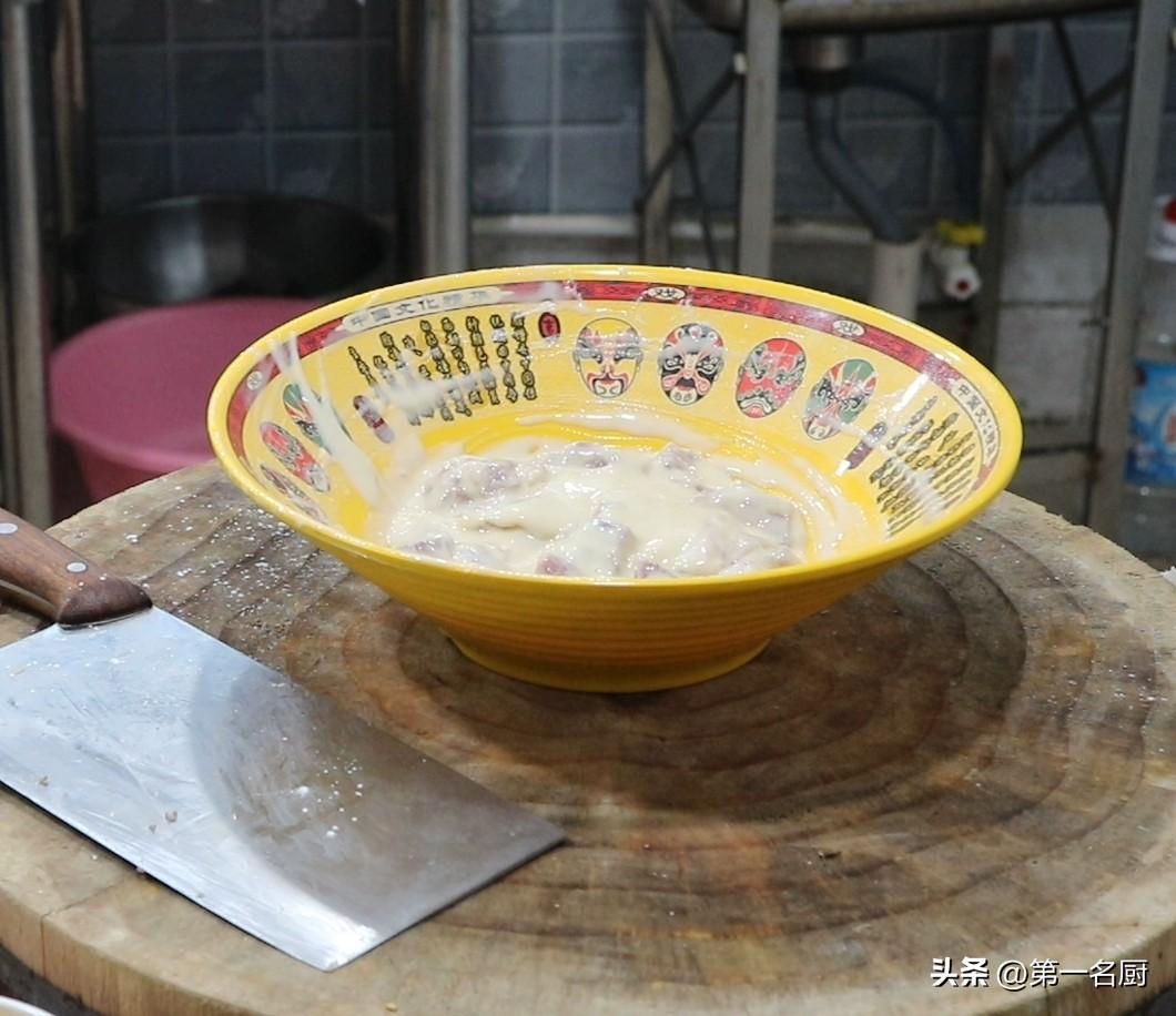 2,在切好的肉丁里面,加入食盐,胡椒粉,料酒,生粉,鸡蛋清,食用油拌匀。