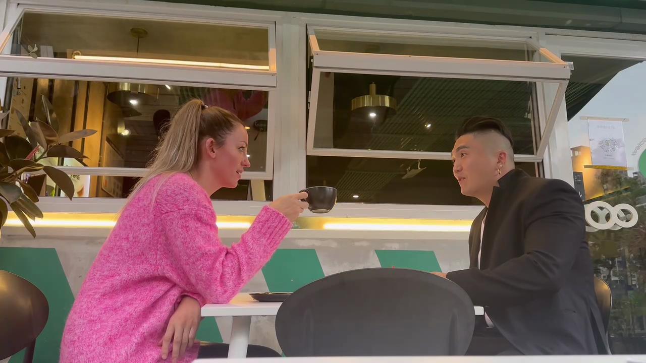 在相识半个月后,彭翀又将维卡约到了他们初见的咖啡店,彭翀提前准备了一束鲜花,在维卡到来时,他直接拿出了鲜花,深情地对维卡说:“维卡,我喜欢你,你别走了,我想让你留在中国”。