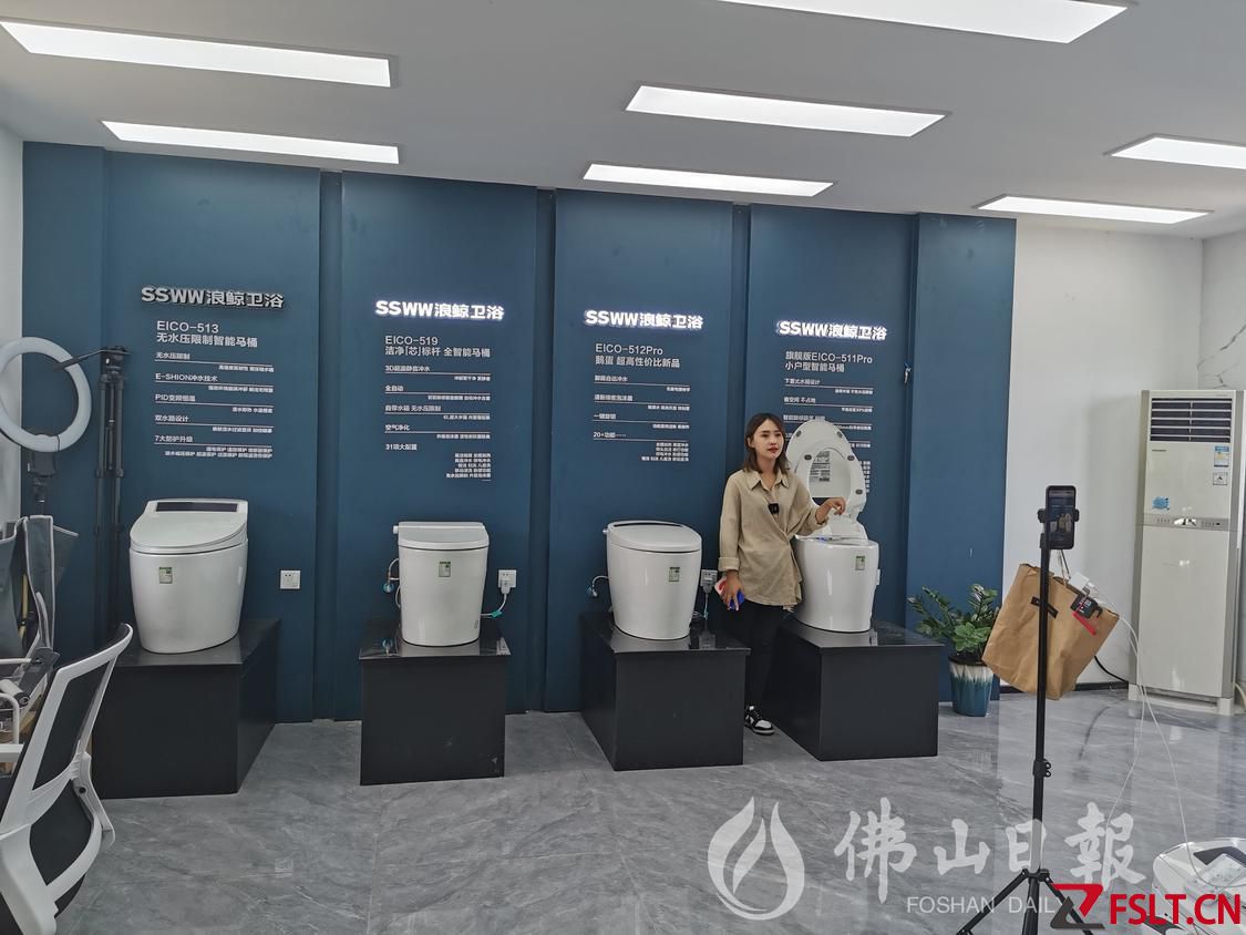 走进园区的业务大楼,只见箭牌、安华等卫浴品牌的网店客服,正在处理订单或与买家交流;产品直播间里,主播们也正忙于推介产品,一片繁忙景象。
