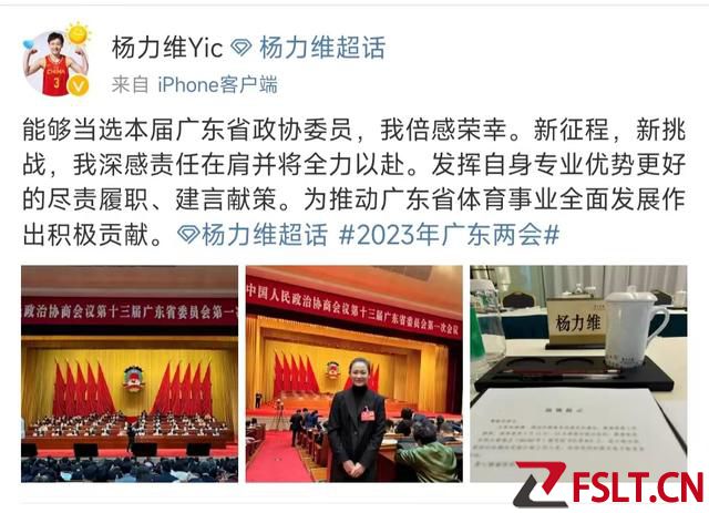 1月14日,中国女篮名将杨力维在社交媒体晒出图片表示,“能够当选本届广东省政协委员,我倍感荣幸。新征程,新挑战,我深感责任在肩并将全力以赴。发挥自身专业优势更好的尽责履职、建言献策。为推动广东省体育事业全面发展作出积极贡献。”
