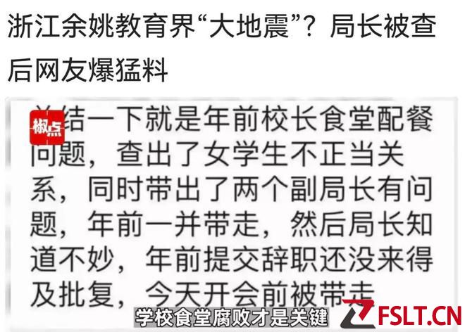 在网友的爆料中,王局的日常生活就是单位醒酒、陪情人和KTV三点一线式的生活,但随着事情的进展才知道学校食堂的腐败才是关键。学校给学生的伙食一塌糊涂,家长的抱怨和反映引起了上级部门的注意,没想到一查,竟然揪出萝卜带出泥,这不亚于余姚教育界的一场“大地震”,威力之大可想而知!