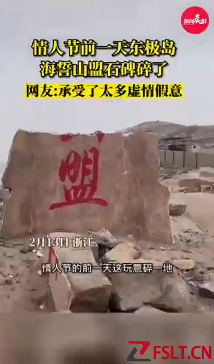 有网友报料称,2月14日前一天,位于舟山东极岛的海誓山盟石碑碎了。
