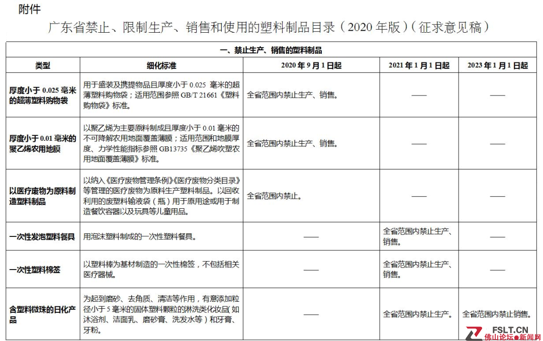 广东新的塑料限禁令已于9月1日正式实施,21日,广东省发展改革委表示,为便于各地执行,省发展改革委、省生态环境厅已共同制定《广东省禁止、限制生产、销售和使用的塑料制品目录(2020年版)》,明确了相关禁限细化标准、区域范围和时间节点。