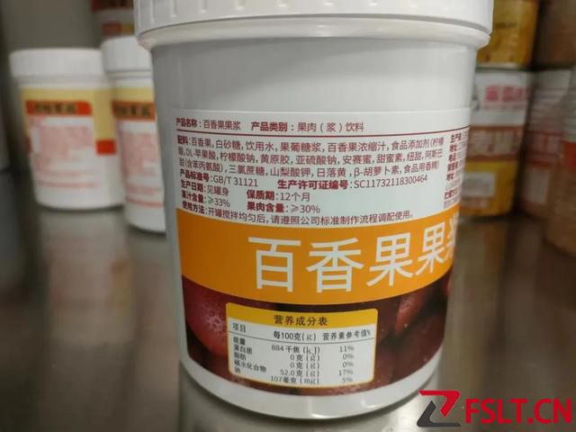 ▲配料表中可以看出,蜜雪冰城使用的百香果果酱使用了十几种食品添加剂,其他果酱差不多均是如此。新京报调查暗访组 摄