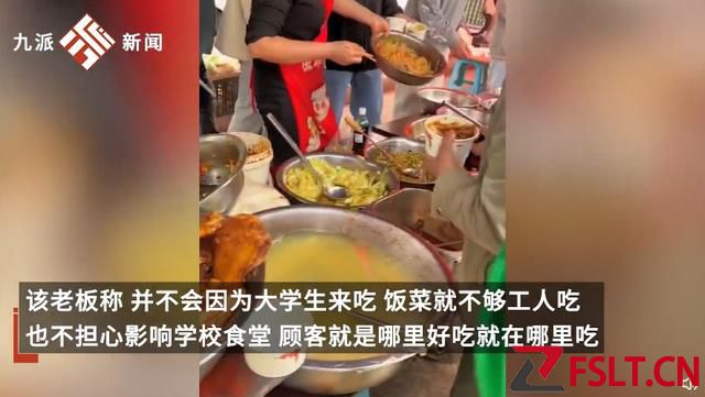 该老板称,并不会因为大学生来吃,饭菜就不够工人吃,也不担心影响学校食堂,顾客就是哪里好吃就在哪里吃。“不担心影响学校,主要是这个竞争,大家哪个地方菜弄得好,就到哪个地方吃。”
